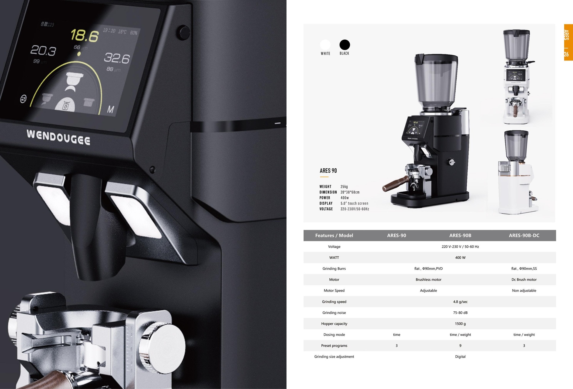 - Grind by time and grind by weight – utilizing high-recision electronic scale with an accuracy of +/- 0.2g
